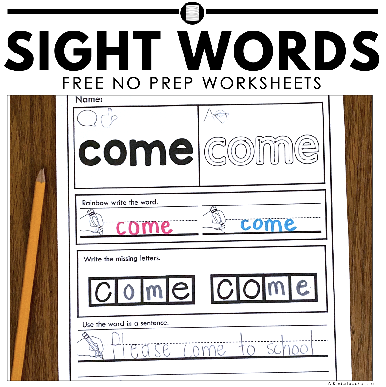 Come Sight Word Worksheets Kindergarten