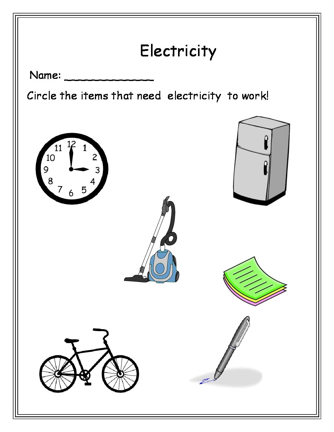 Electricity Worksheet Printable For Kindergarten