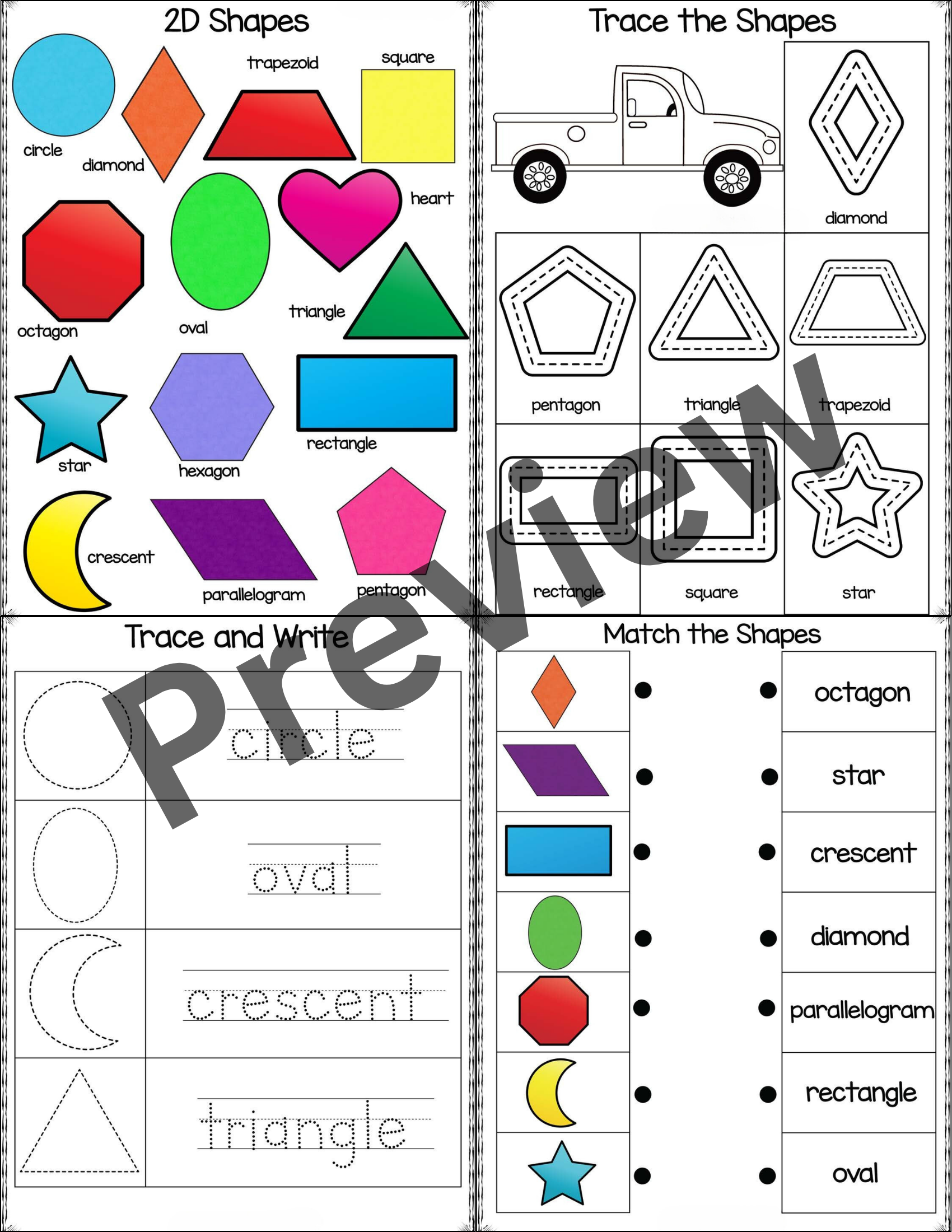 2D Shapes Diamond 2D Shapes Worksheets Draw Trace Color Cut And For