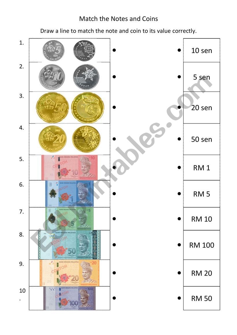 English Worksheets Malaysian Ringgit And Sen