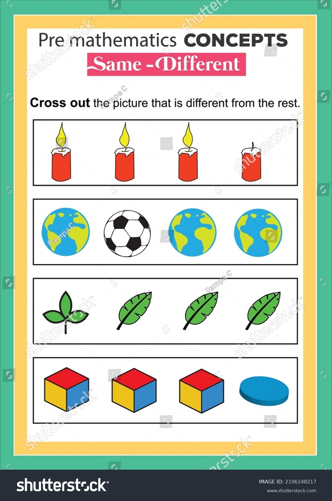 Pre Math Concepts Same Different Educational Stock Vector Royalty