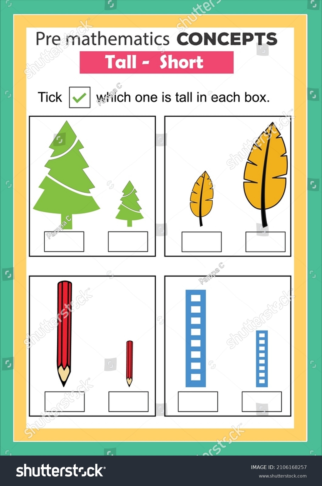 Pre Math Concepts Tall Short Educational Stock Vector Royalty