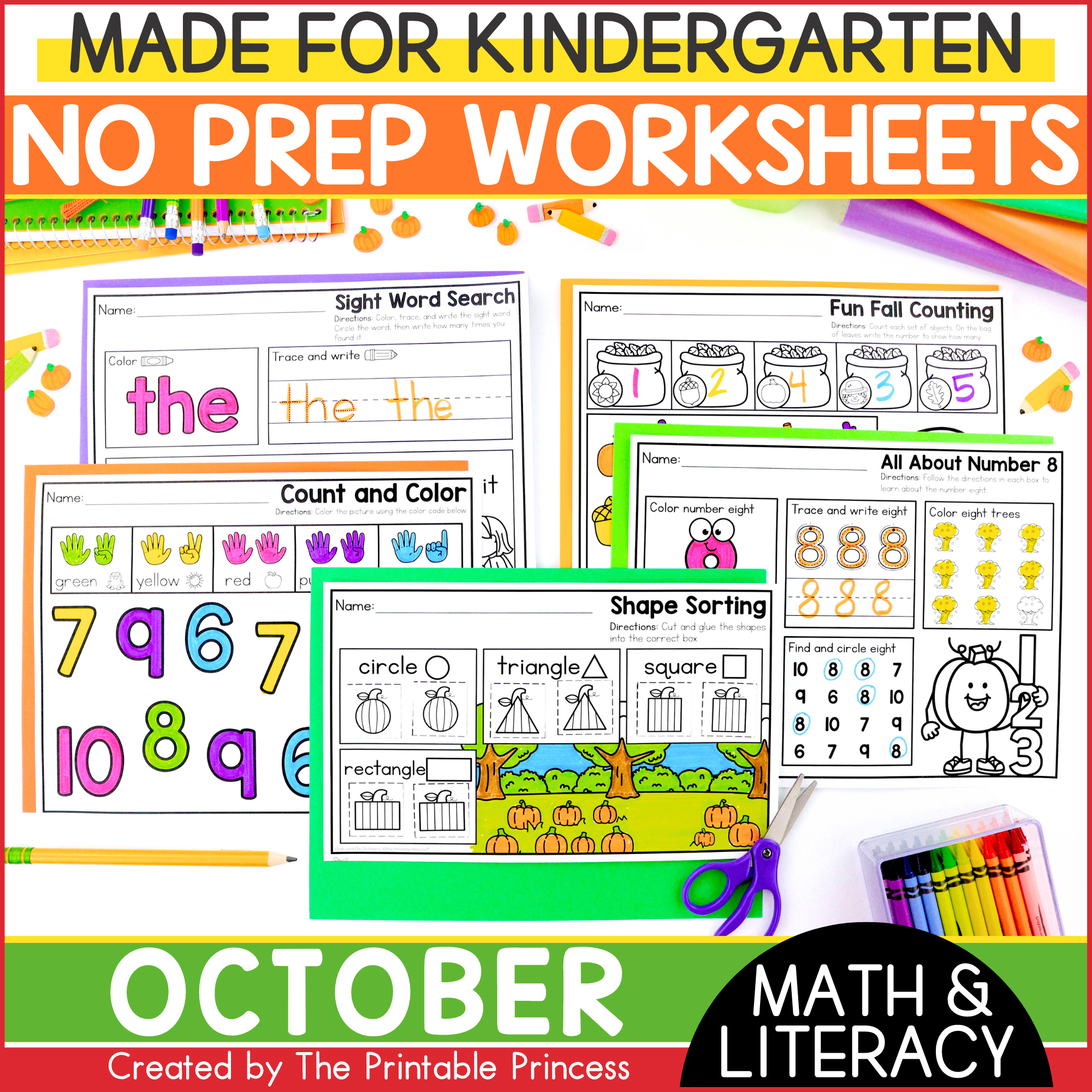Fall Literacy And Math Worksheets For Kindergarten October The Printable Princess